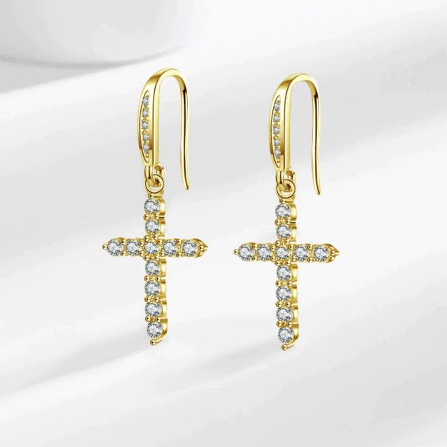 Expresse sua fé com sofisticação! Adquira agora o Brinco Cruz Radiante e brilhe em todas as ocasiões. ✨💖